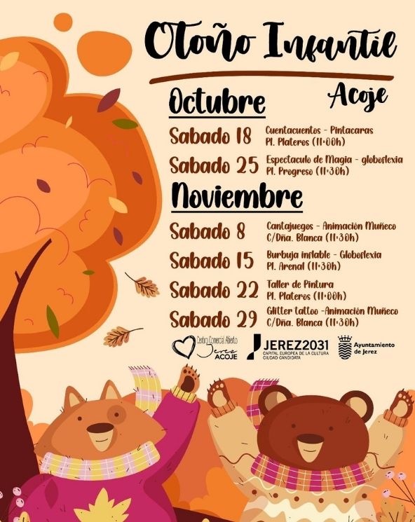 Estas actividades tendrán su primera cita este sábado 18 de octubre en la Plaza Plateros con cuentacuentos y pintacaras a partir de las 11:00 horas. Y es que ‘Otoño Infantil’ será sinónimo de diversión para los más pequeños y pequeñas a través de cuentacuentos, talleres de pintacaras, espectáculos de magia, globoflexia y otras actividades de animación infantil pensadas para toda la familia. Las actividades se llevarán a cabo todos los sábados de octubre y noviembre por las mañanas.