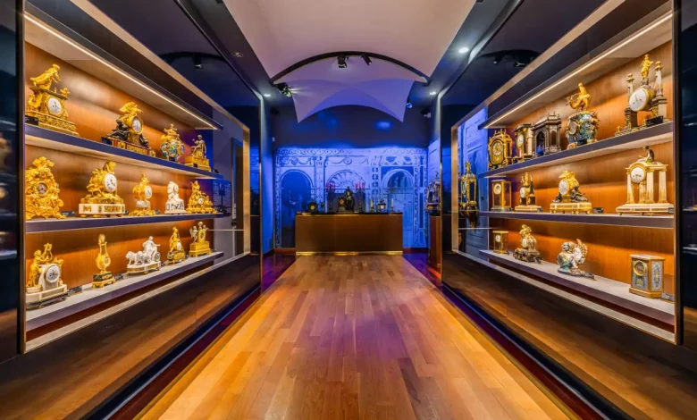 Entrar en el museo es como viajar en el tiempo. En la Sala Azul nos esperan los relojes franceses: más que medir el tiempo, son pequeños objetos de arte con mármol, porcelana… y hasta oro aplicado con una técnica antigua llamada ormolu, que dio origen a los famosos “relojes malditos”, porque quienes trabajaban con ese compuesto tóxico morían jóvenes.