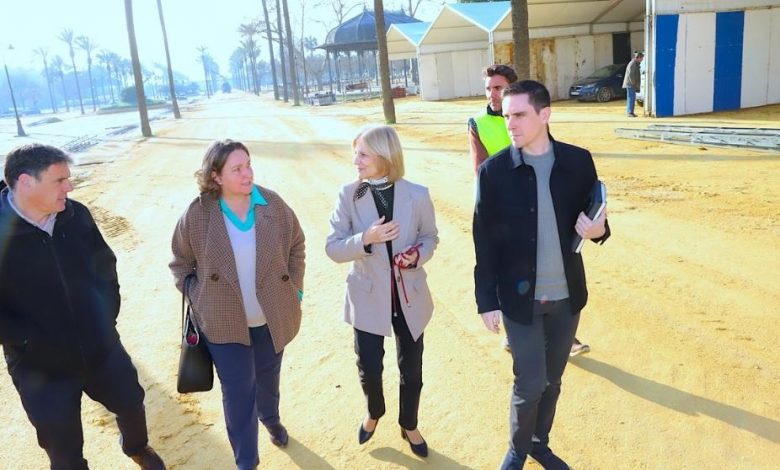 La alcaldesa de Jerez, María José García-Pelayo, ha visitado las obras que el Ayuntamiento está realizando en el Parque González Hontoria para mejorar el estado del albero de cara a la próxima Feria del Caballo, que se celebrará en mayo.