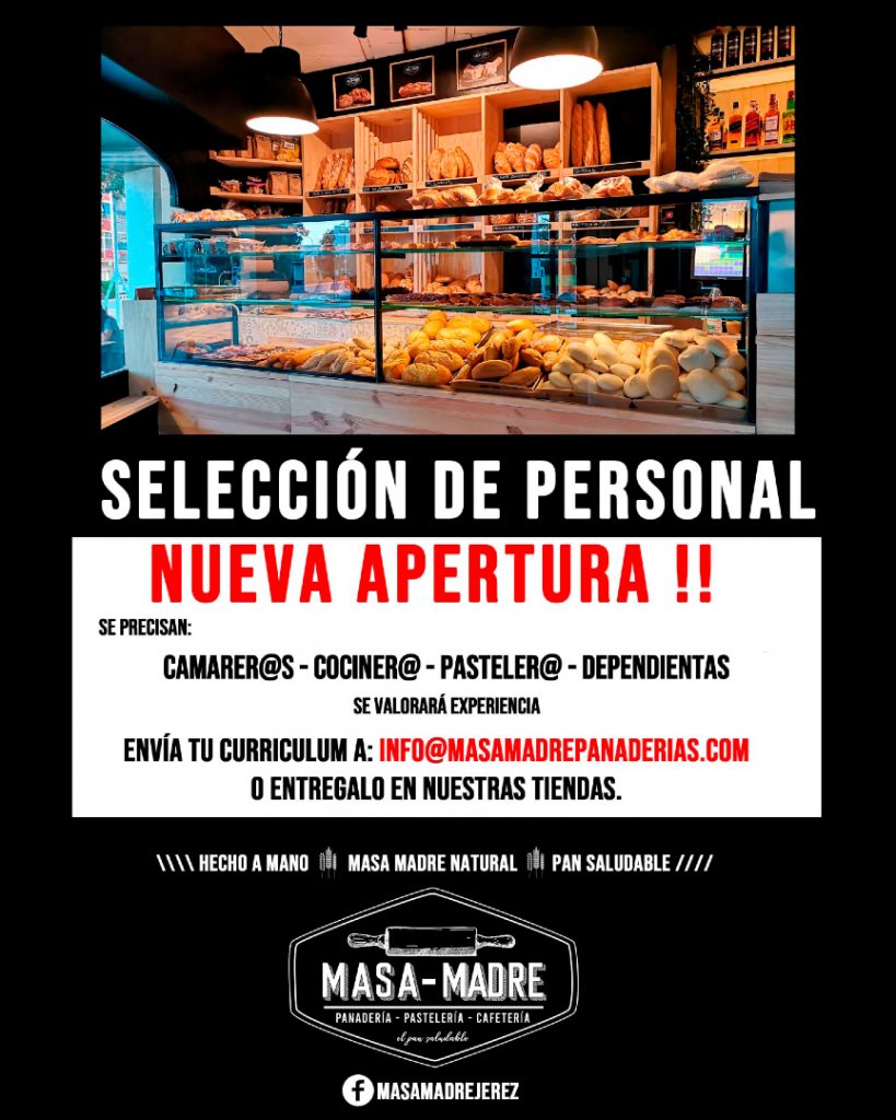 Las personas interesadas pueden enviar su currículum por correo electrónico a la dirección info@masamadrepanaderias.com, o bien entregarlo de forma presencial en cualquiera de los establecimientos que la firma tiene actualmente en Jerez.
