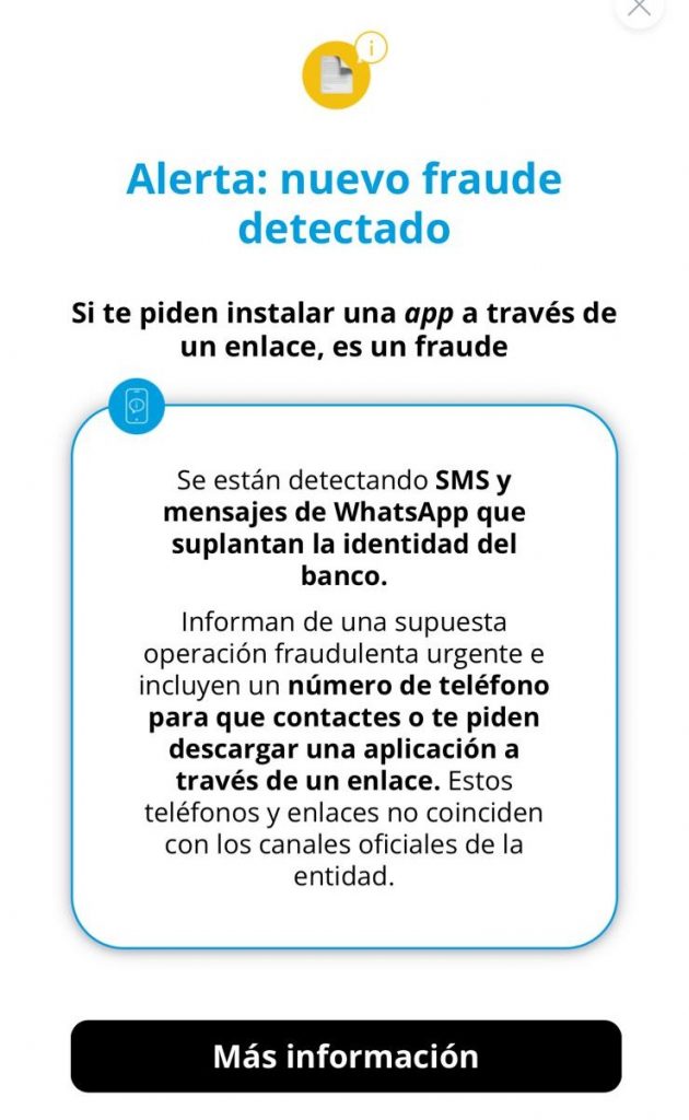 Según las advertencias difundidas por la propia entidad bancaria, los ciberdelincuentes intentan convencer a la víctima de que instale una app desde un enlace enviado en el mensaje.