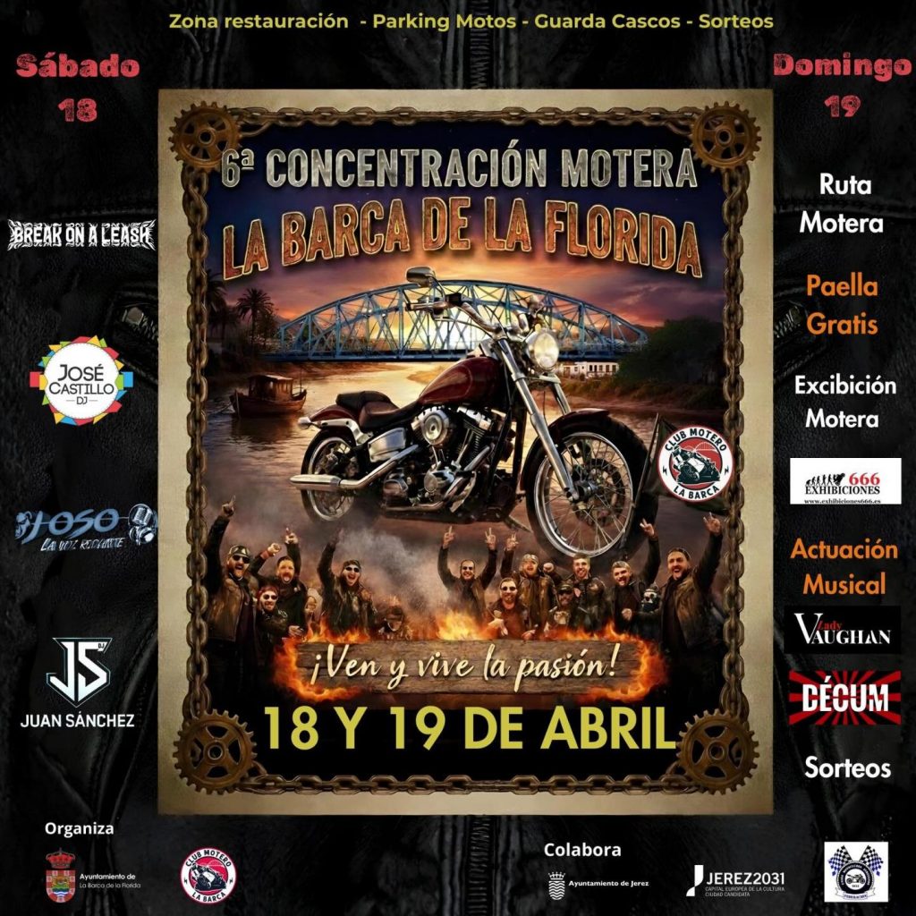 La localidad de La Barca de la Florida se prepara para vivir un intenso fin de semana con la celebración de la VI Concentración Motera, un evento que combina motos, música en directo y ambiente festivo y que espera reunir a numerosos aficionados del mundo del motor.