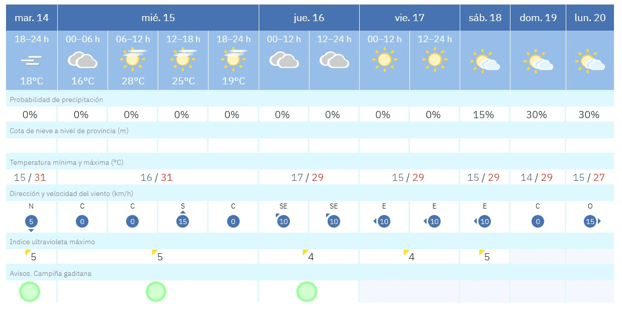 Estos trabajos de mantenimiento se están haciendo a pesar del caluroso otoño que atraviesa la ciudad. Este es el parte meteorológico según la Agencia Estatal de Meteorología para esta semana en Jerez.